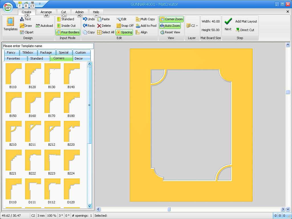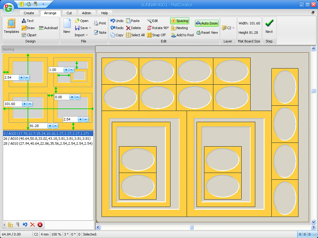 The GUNNAR MAT CREATOR GMC software is the state-of-the-art and most advanced, user-friendly operation software for computerized mat cutters CMC on the market, developed by framers for framers. Absolutely optimized for operational usage within the wall décor and picture framing sector. Teamed up with new GUNNAR AiOX or NOVEX cutter, feature-rich GMC will bring almost limitless cutting options into every framing business. GMC is the result of many years of framing software development and market experience, a combination of the wishes and requirements of our partners and customer, with the very latest knowledge from research and hardware and software engineering practice. This software permits total creative freedom, tapping into unused potential.